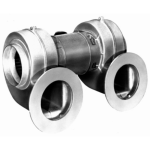 Model LMF-4 with customized, cast housing has a special inlet collar and discharge flange to match the customer’s mating surfaces. For forced air drying of ink on printing presses.