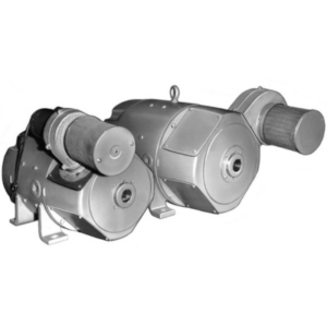 Modified Arrangement 2 blower with drives and idler pulley enclosed in support base for mounting motor. Compact design to fit in a confined space.